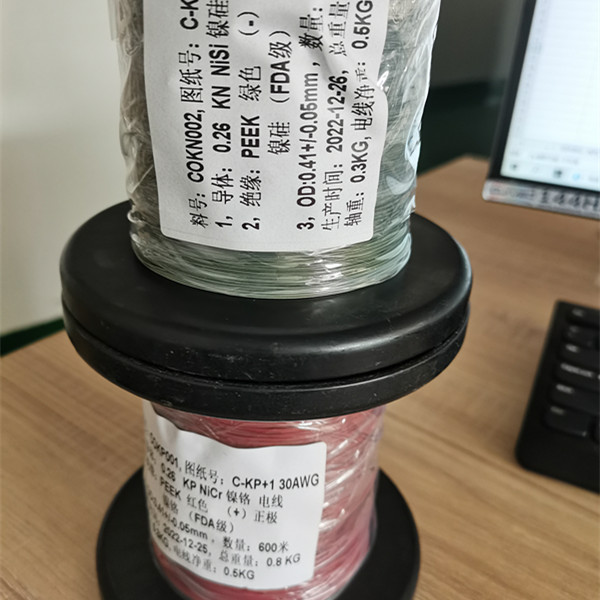 We provide flat duplex insulated thermocouple wire consisting of a pair of conductors individually PEEK-resin insulated, and then PEEK-resin sheathed. In response to the needs of many of our customers, TypesJ, K and T, with 0.2-mm and 0.65-mm conductors, respectively. We can also make products compliant with Class 1.We can also make PEEK insulated, heat-resistant wire Cable